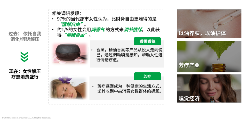 家庭,职场及社会压力催生女性自我疗愈型消费背景下,功效和情感价值共同驱动精油产品 红桃影院,主打滋润舒缓神经的油类护理产品方兴未艾,嗅觉经济应运而生, 。