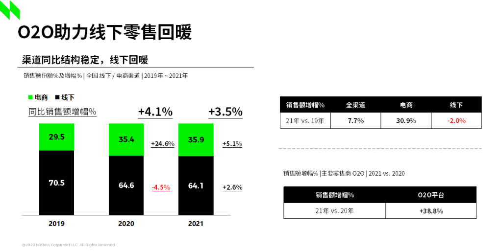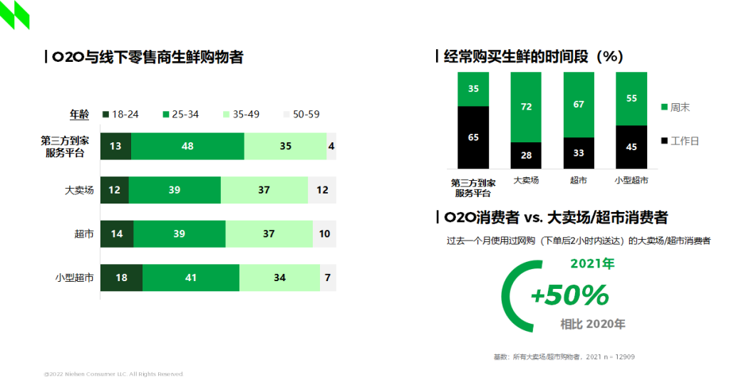尼尔森IQ研究发现,O2O在线下大卖场超市的渗透率有明显提升,与线下零售形成人群互补,场景互补,未来,O2O有望持续助力线下零售回暖 红桃视频免费观看,在消费人群上,O2O以线上下单,送货上门的模式吸引到更多25-34岁的既要忙事业,又要忙家庭的消费者,与大卖场超市中老年消费者更多的情况形成有效的补充,在消费场景上,O2O以其小时达的高效服务满足了消费者周中采购的即时性需求,到店消费则是更多发生在周末,满足消费者周期性的采购需求,线下零售与O2O有机结合,不仅可以扩大线下零售对年轻富裕族群的获得,从而降低到店客流减少的影响,并在同时,在现有消费场景上进行有效延伸,捕获日常的即时购物需求,从而为线下零售商带来新的销售增量。