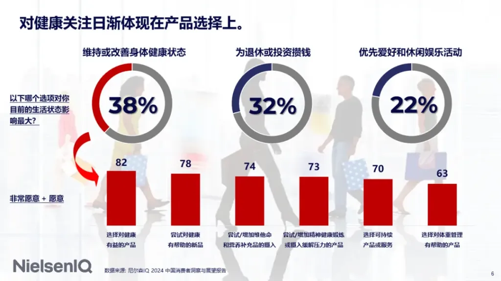 与此同时 红桃影院,消费者对于健康理念的关注度持续上升,“健康”要素位列影响消费者产品选择的榜首,38%的消费者表示对他们生活状态影响最大的因素是维持并改善健康状态。