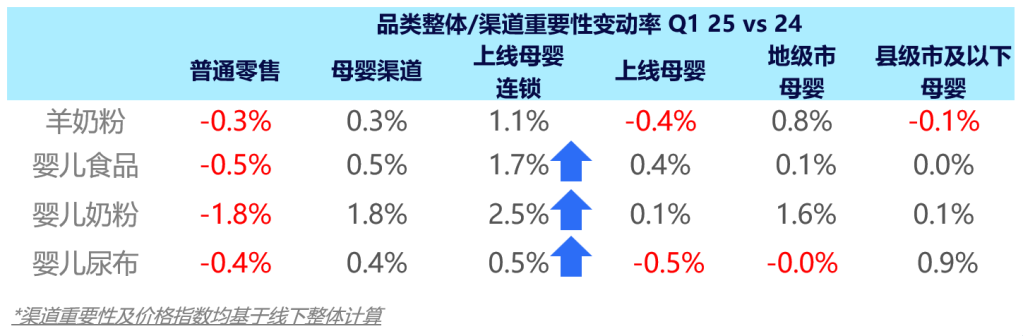 2025年一季度 红桃视频,线下母婴渠道呈现明显分化趋势,高线城市母婴品类整体回暖,主要受益于新生儿需求增长,增速显著高于下线市场,其中婴配粉在地级市的市场重要性提升尤为突出,与此同时,羊奶粉在下线市场展现出强劲增长势头,这主要得益于厂商加速渠道下沉,积极布局下沉市场。