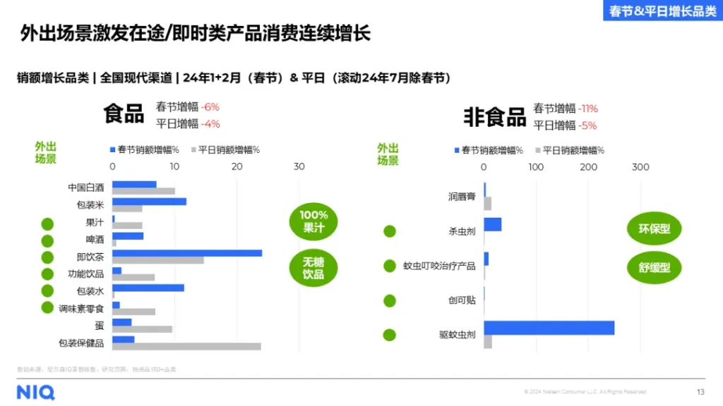 与此同时,得益于春节假期期间频繁的外出活动,在途零食饮料(例如果汁,即饮茶),以及保健类产品(例如杀虫剂 红桃视频免费观看,蚊虫叮咬治疗产品)都迎来了销售旺季,这一销售增长势头在节后也得以延续,彰显了这些品类较强的市场稳定性与增长潜力。