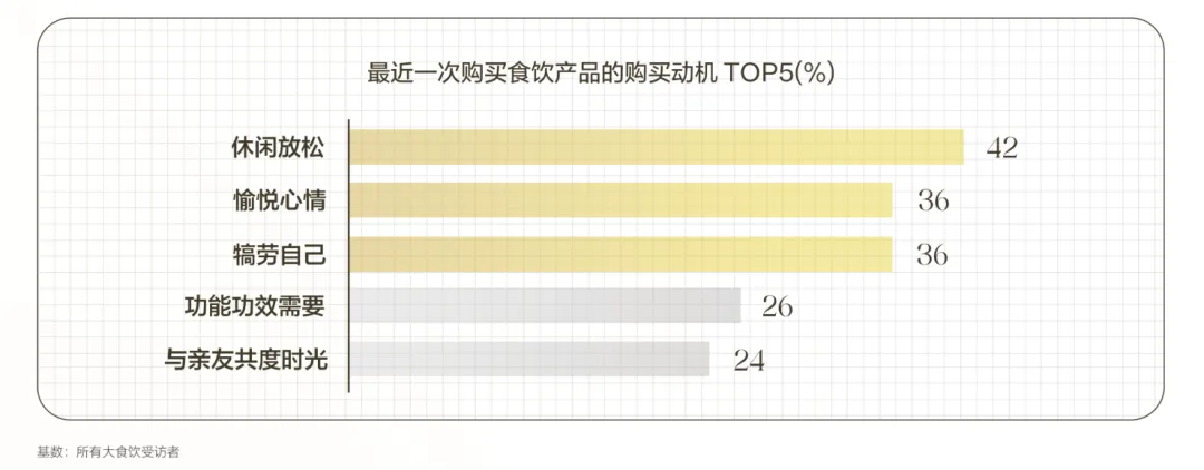 情绪成为吸引消费者注意力的第一关键词,消费者带着“当下的情绪需要”寻找产品,在所有大食饮受访者中,购买动因中Top3均为情绪类动机,情绪变为前置卖点直接写进产品名中,而在“颜控”蔓延下,包装愈发注重营造视觉节奏感和情绪带入,“外观/包装/颜值”在新品选择与分享传播中的作用显著上升 红桃视频在线。