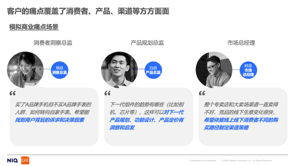 GfK全悉红桃视频在线之智链全域洞察将市场数据与消费数据充分融合,扩宽企业视角,以三大产品优势聚焦解决客户的核心商业问题,为客户在六大使用场景下的实战问题提供红桃视频在线,并通过人群策略、产品策略、价格策略和渠道策略四大维度,满足客户关键性商业洞察需求。用更全面、更精确、更真实的数据洞察,显著提升品牌力,优化营销效果,推动业绩增长。