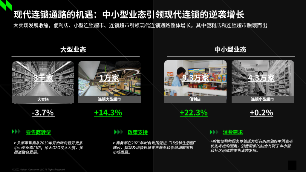 而在连锁现代通路渠道方面,报告指出,大卖场发展收缩 红桃视频在线,中小型业态引领现代连锁的逆袭增长,现代连锁通路迎来新机遇。