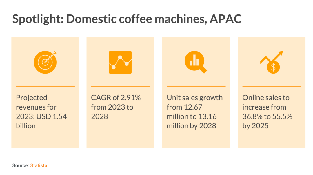 后疫情时代,T&D红桃视频高清诸多品类的销售行情虽然仍未回归至疫情前的水平,但未来整体前景依然看好。在中国、印度、泰国和越南等亚太国家,随着可支配收入的增加,中产阶级消费者有更多预算花在T&D产品等非必需品上。其中增速最快的是自动咖啡机品类(包括家用和商用机型),以家用咖啡机为例,预计2023年亚太地区的销售额将达15,4亿美元,2028年亚太地区销量将达到1316万台。 红桃视频在线。