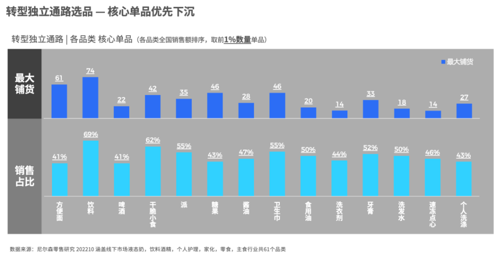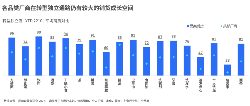现代连锁通路与转型独立通路中品类均存在一定溢价空间
