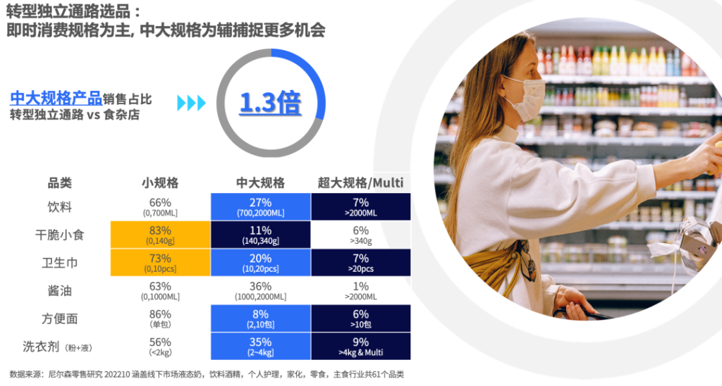 转型通路店:为满足消费者即时性消费需求,以小包装产品为主 红桃视频在线,中大规格为辅。