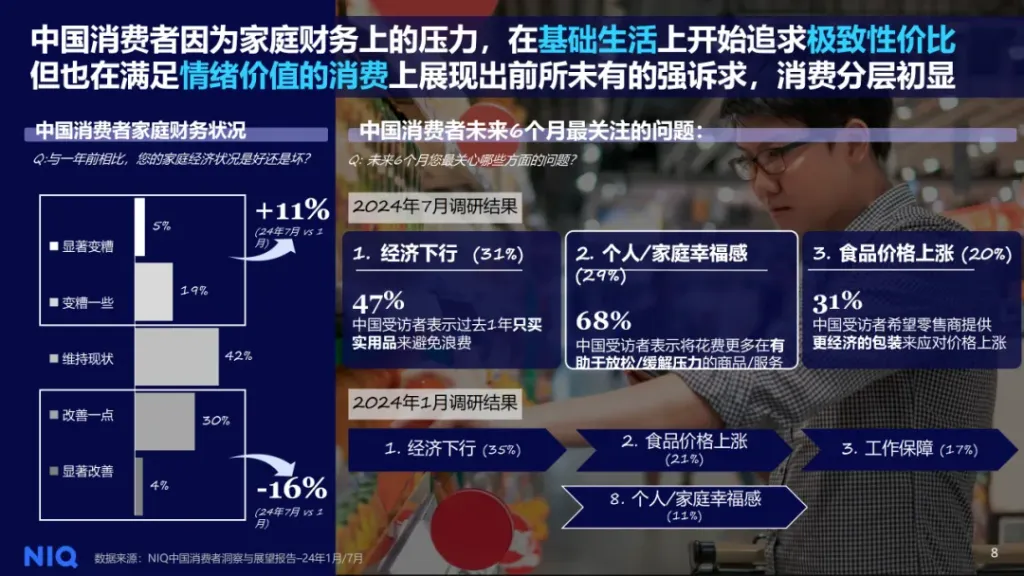 中国作为世界第二大经济体,经济增速维稳,仍处于领涨地位,聚焦到中国消费者,最新数据显示,中国消费者对未来家庭经济的预期趋势是,变差的预期增加了11%,变好的预期减少了16% 红桃视频免费观看,同时,消费者关心的焦点从经济下行,食品价格上涨和工作保障转向了个人或家庭幸福感。